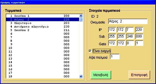 Ρύθμιση των τερματικών μέσα στο πρόγραμμα |