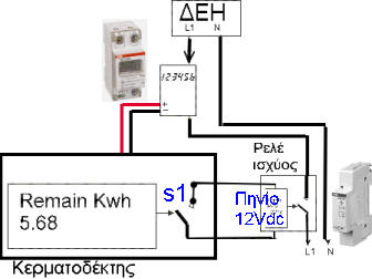 Το αισθητήριο μπαίνει μέσα στον ηλεκτρολογικό πίνακα , σε σειρά με ένα ρελέ ισχύος Όλες οι καταναλώσεις συνδέονται στην έξοδο του ρελέ Ο πελάτης ρίχνει τα κέρματα στο κερματοδέκτη Τα χρήματα μετατρέπονται σε αξία KWh το ποσό φαίνεται στην οθόνη. Ταυτόχρονα ενεργοποιεί και το ρελέ ισχύος για να δώσει ρεύμα στον πελάτη. Το αισθητήριο ενημερώνει το κερματοδέκτη για την ισχύ που καταναλώνει ο πελάτης Η ένδειξη στην οθόνη του κερματοδέκτη ελαττώνεται μέχρι να μηδενίσει Όταν η ένδειξη γίνει μηδέν (ο πελάτης έχει καταναλώσει όλη την ισχύ που αγόρασε), τότε το ρελέ απενεργοποιείται και διακόπτει την παροχή στο πελάτη. Ο πελάτης πρέπει να αγοράσει νέα ισχύ, ρίχνοντας νέα κέρματα στο κερματοδέκτη. Η αγορά μπορεί να γίνει και πριν τελειώσει το προηγούμενο ποσό.