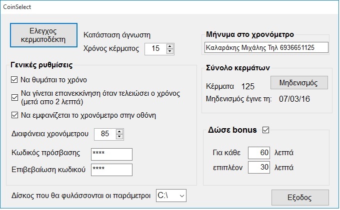 Αφού κάνετε την εγκατάσταση και τρέξει το πρόγραμμα των ρυθμίσεων (coinselect64) θα δείτε τη διπλανή φόρμα